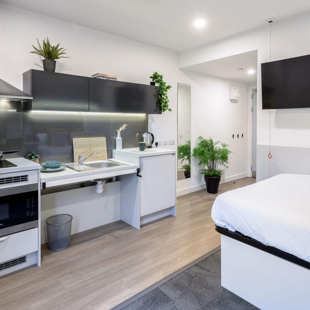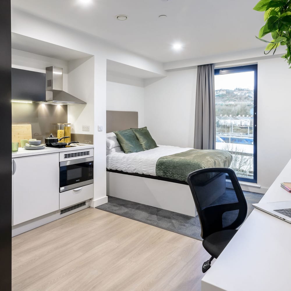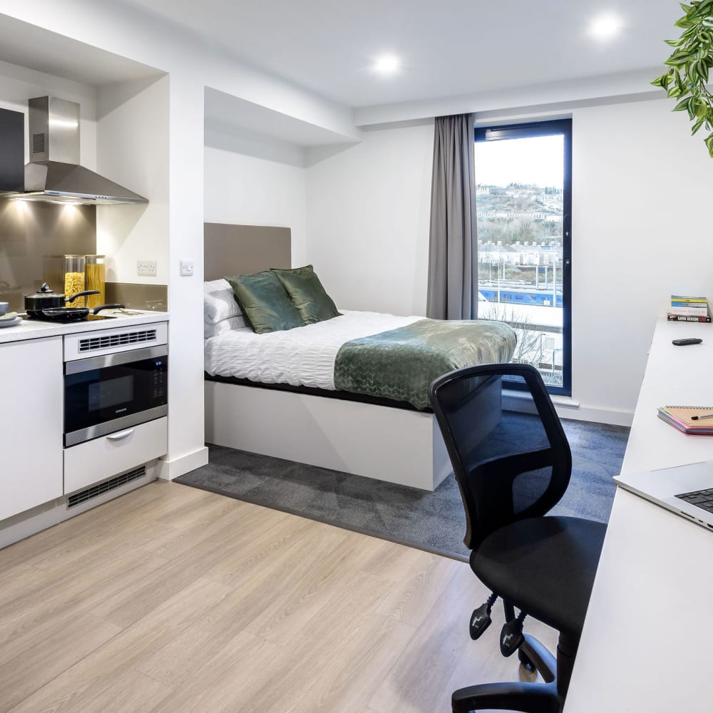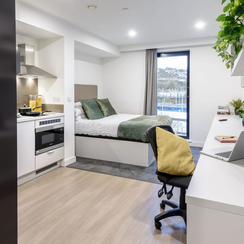 If you're looking for private student accommodation in Swansea, our true Studios are a perfect choice. All of our private studios are self-contained student apartments and come with a fully equipped kitchenette, giving you your own personal space while still having access to all of the shared areas in our Swansea building. Check out the different private studios we offer below.
