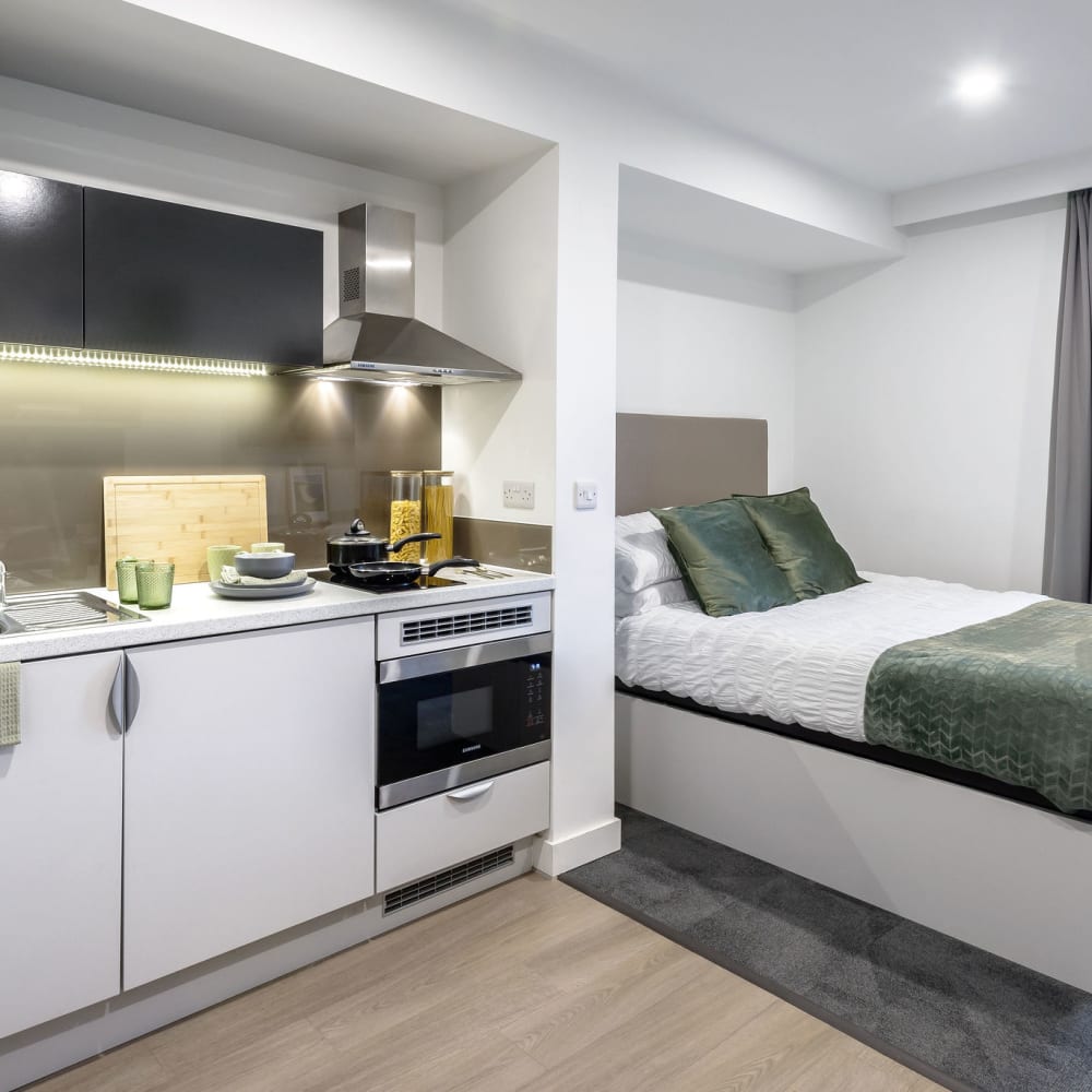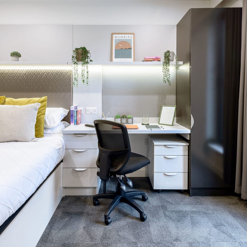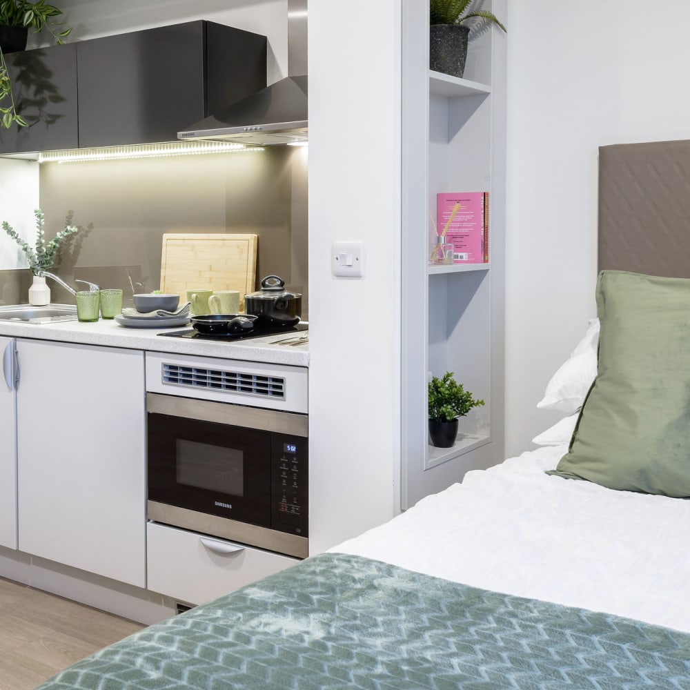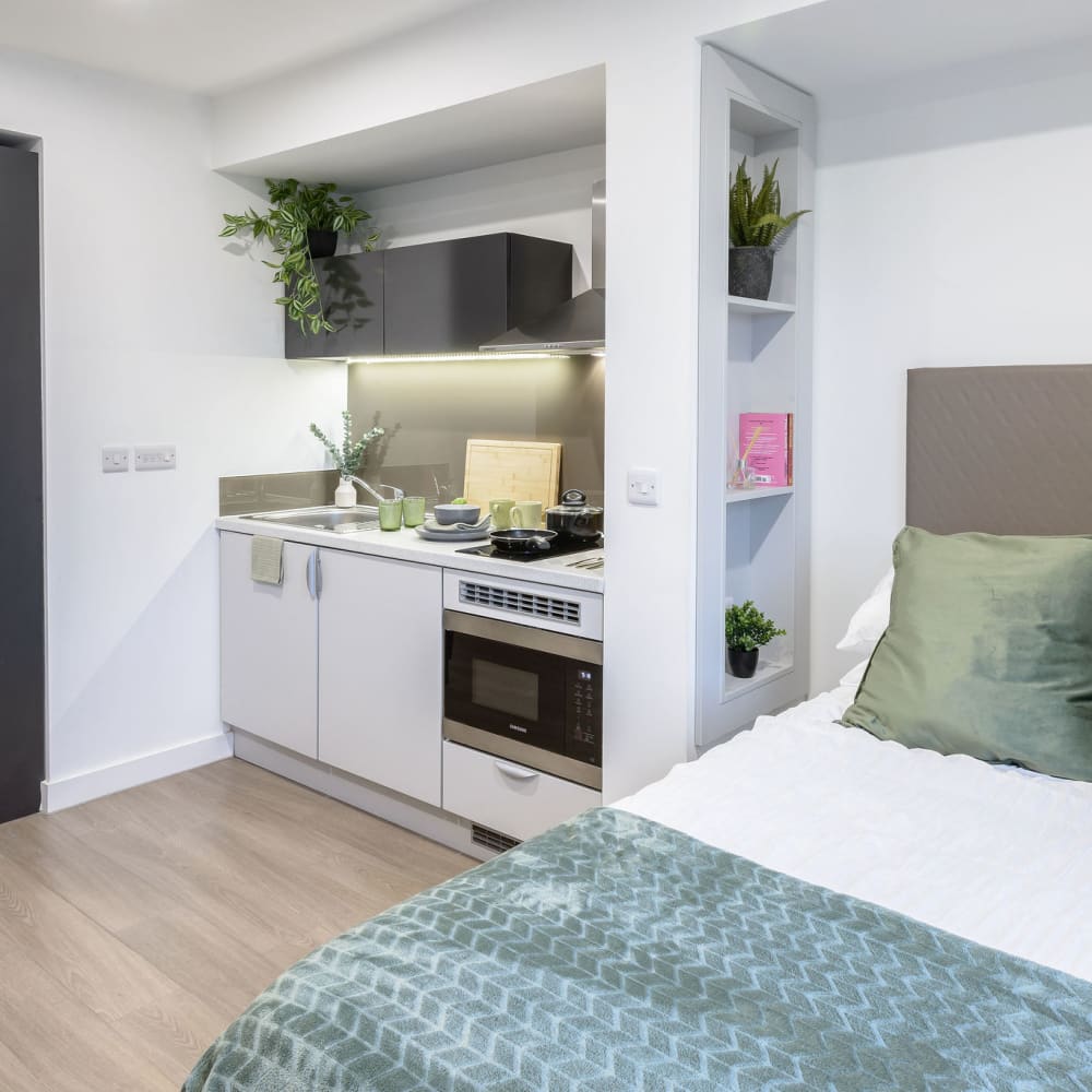 If you're looking for private student accommodation in Swansea, our true Studios are a perfect choice. All of our private studios are self-contained student apartments and come with a fully equipped kitchenette, giving you your own personal space while still having access to all of the shared areas in our Swansea building. Check out the different private studios we offer below.