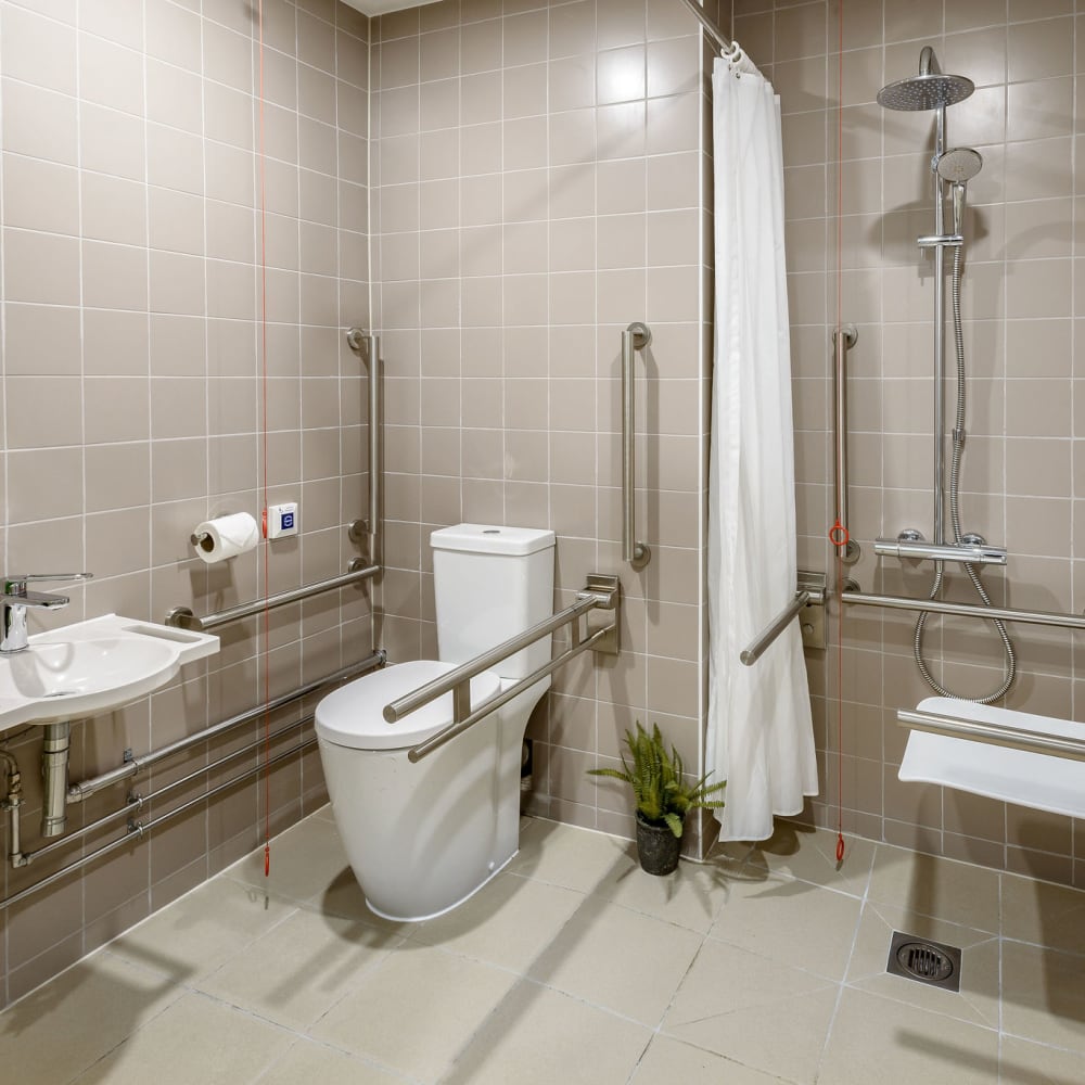 A spacious accessible studio, fit with ensuite bedroom and kitchenette.